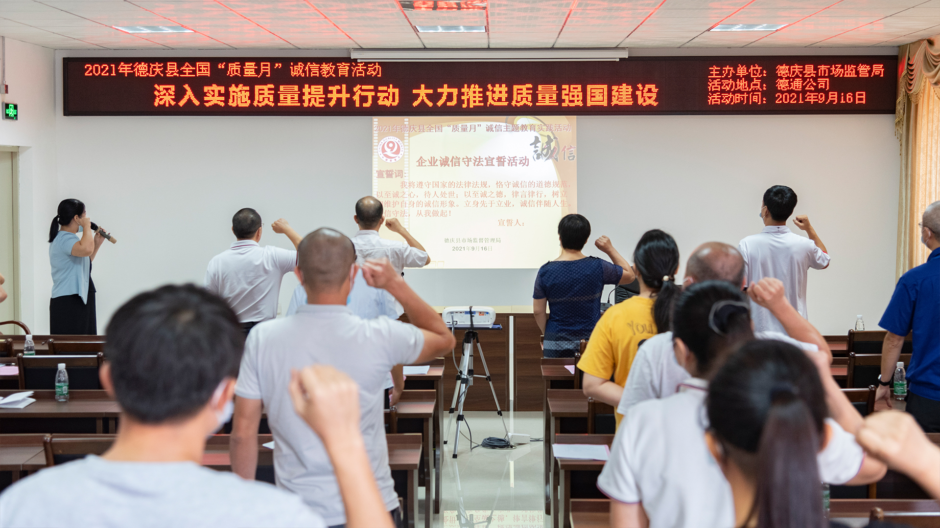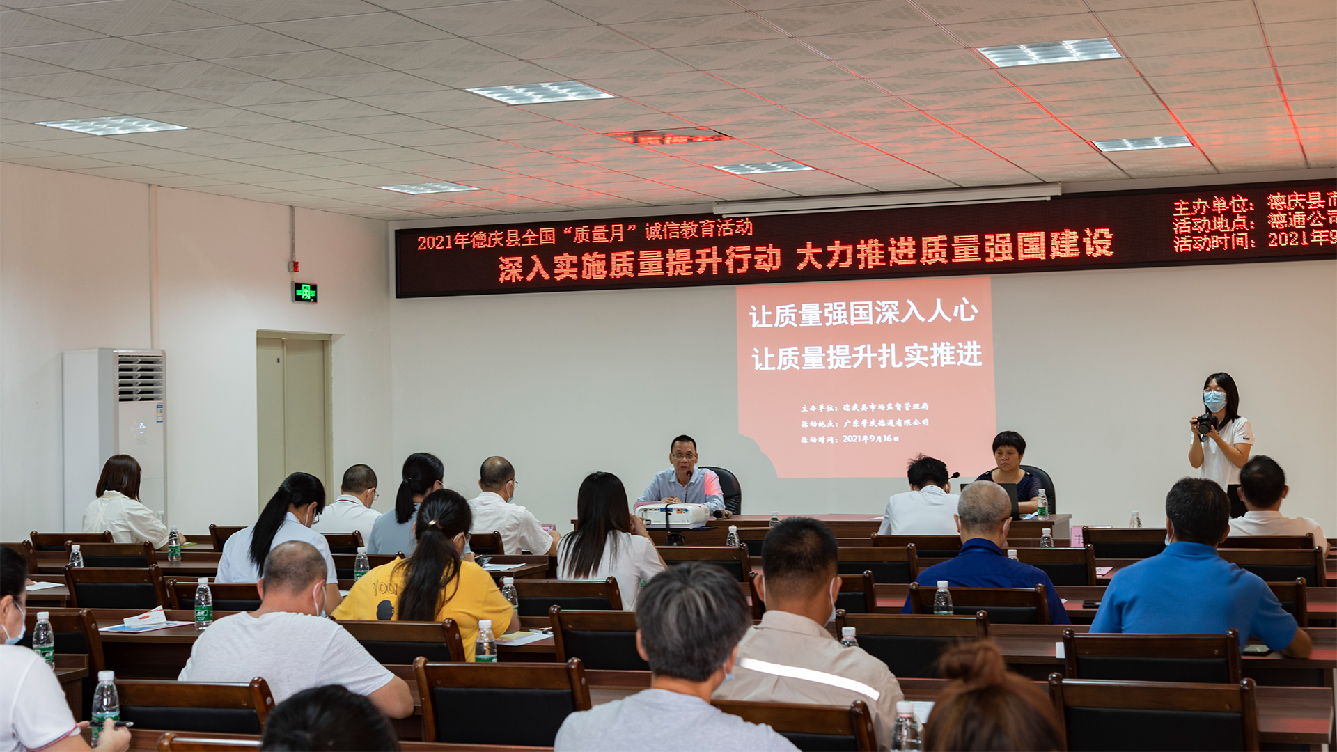 今年全國“質量月”以“深入實施質量提升行動,大力推進質量強國建設”為主題,由市場監(jiān)管總局等20個部門聯合開展。9月16日,德慶縣市場監(jiān)管局組織當地企業(yè)在德通風機總部培訓中心進行了系列宣傳活動。